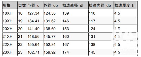 XXH 型同步帶輪尺寸表 單位:(mm)