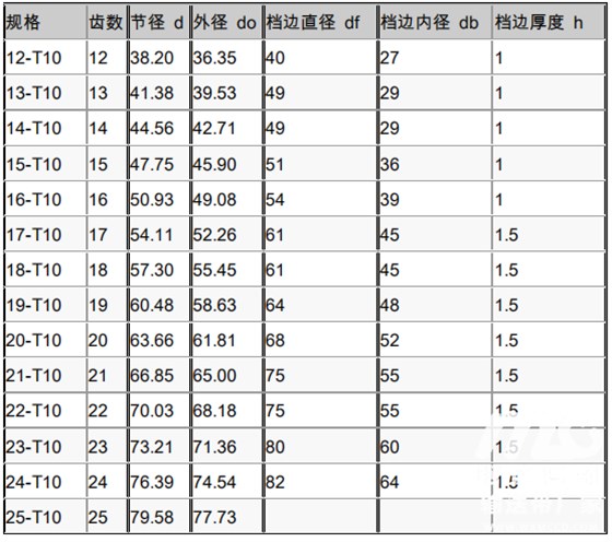 T2.5 型同步帶輪尺寸表 單位:(mm)
